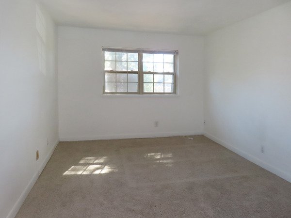 Both bedrooms have carpet. One has a walk-in closet; the other bedroom has a closet which spans a full wall. The shared bath is convenient for both bedrooms. The bathroom has a tub-shower and tile floors.